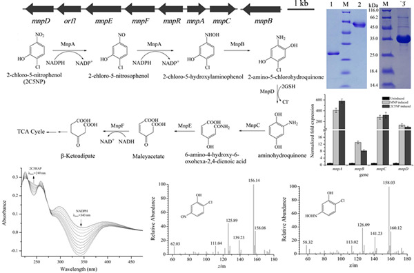 图2. 微生物降解2-氯-5-硝基酚分子机理