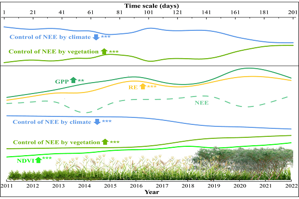 图4 植被和气候在自然修复过程中对生态系统碳通量的控制