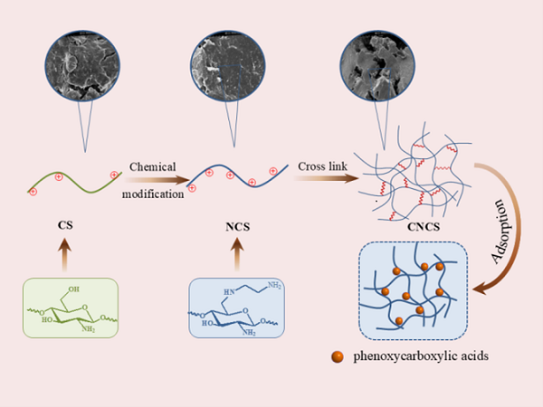 除草剂作为一种专门用于控制或消灭杂草的化学药剂,在农业生产中发挥着不可或缺的作用。然而除草剂的大量使用会造成土壤和地表水污染,对生态环境造成不良影响。中国科学院烟台海岸带研究所海岸带植物化学与产品工程研究组(衣悦涛研究团队)基于前期研究基础,以来源于水产品加工的固体废弃物壳聚糖为原料,发展了针对水环境中苯氧羧酸类除草剂的壳聚糖类吸附剂,实现了水中多种苯氧羧酸类除草剂的高效吸附脱除。