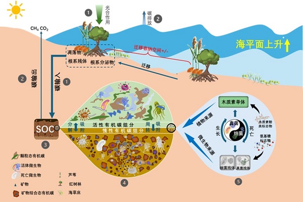 相关研究成果以 “Restoration age enhances soil organic carbon sequestration primarily through plant-derived carbon in a coastal wetland” 和 “海平面上升对滨海湿地碳汇功能的影响”为题分别发表于《Plant and Soil》和《中国科学:地球科学》。以上研究得到了国家自然科学基金项目、国家重点研发计划和中国科学院国际大科学计划项目资助。