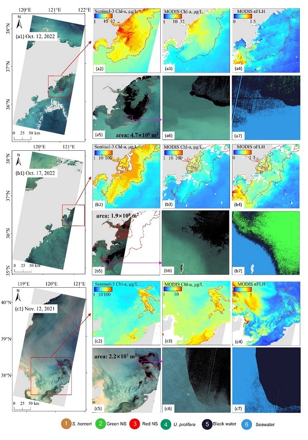 在气候变化与人类活动的双重压力下,全球海岸带海洋藻华呈现分布范围扩大、发生频率增加、持续时间延长、多潮齐发等特点,对海洋生态系统和沿海经济发展构成严峻挑战。近日,中国科学院烟台海岸带研究所海岸带环境灾害遥感与评估研究组(邢前国研究员团队)围绕近岸复杂光学水体多类型藻华的高空间分辨率遥感识别开展了针对性研究,研究方法及其数据结果推动了海岸带藻华遥感技术的发展。