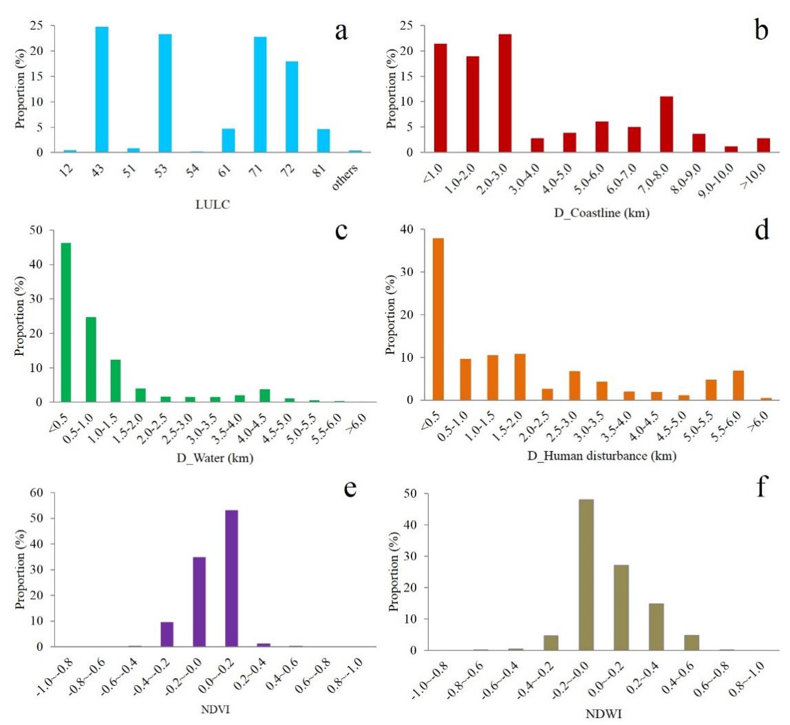 图3 反嘴鹬追踪个体在繁殖地的生境偏好特征