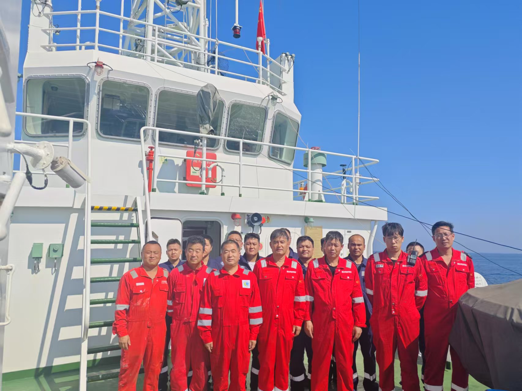 上午8时30分,升国旗仪式正式开始。在激昂的国歌声中,五星红旗迎着朝阳冉冉升起,全体人员肃立行注目礼,表达对祖国的无限热爱与崇高敬意。与此同时,在海上执行科学考察任务的“创新一”科考船上,全体科考队员在甲板上整齐列队,与研究所同步升起鲜艳的五星红旗。这一刻,陆地与海洋遥相呼应,展现了烟台海岸带所科研人员心系祖国、团结一致的爱国热情。