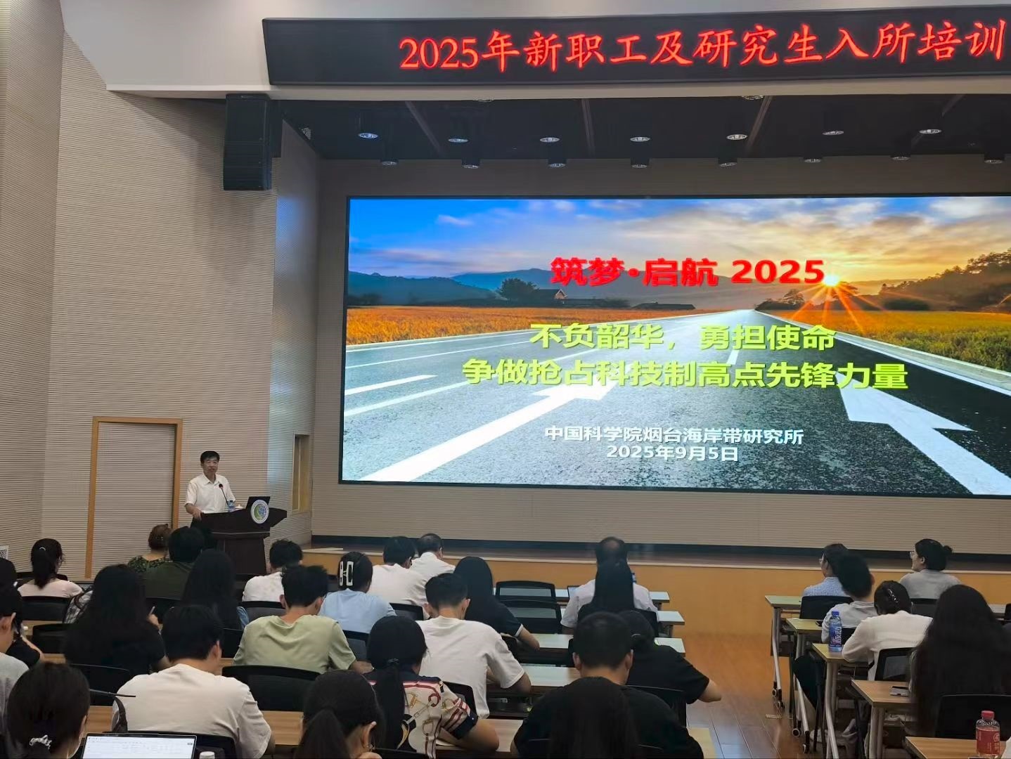 9月5日,中国科学院烟台海岸带研究所举办2025年度入所培训,党委书记、副所长郭秀银,副所长赵军出席培训会,新入所职工和研究生90余人参加培训。