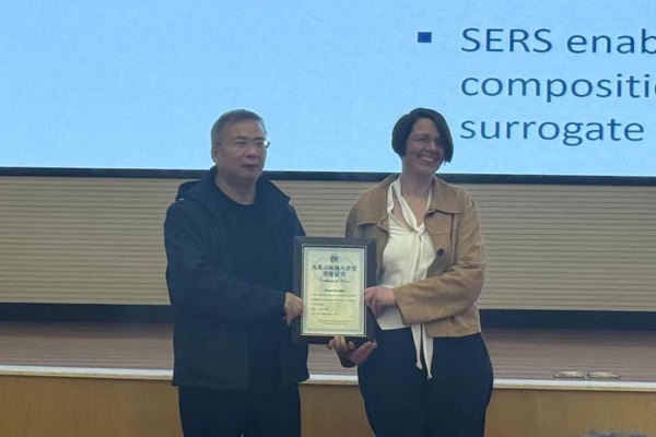 12月9日,欧洲科学院院士、德国柏林洪堡大学Janina Kneipp教授应邀访问中国科学院烟台海岸带研究所,并作题为《Vibrational spectra in enhanced local fields: Possibilities for probing biomolecules in different environments》的学术报告。报告会由烟台海岸带所张志阳研究员主持,陈令新研究员为Kneipp教授颁发了荣誉证书。